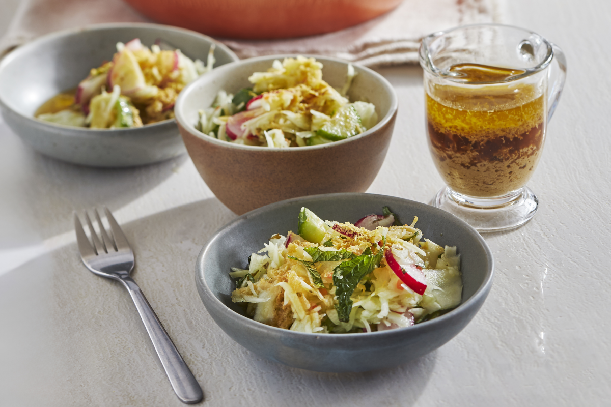 The dip goes well with raw veggies or as a sandwich spread with meat. You can keep the pita wedges in a tin for up to a week.